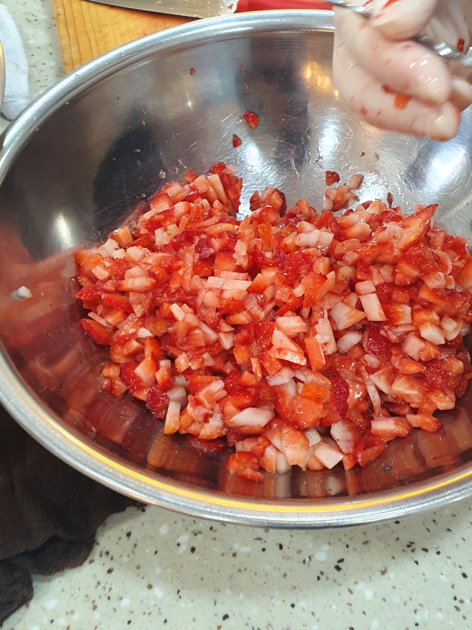 2. 딸기를 버블티 빨대에 빨릴 정도로 잘게 다져준다
