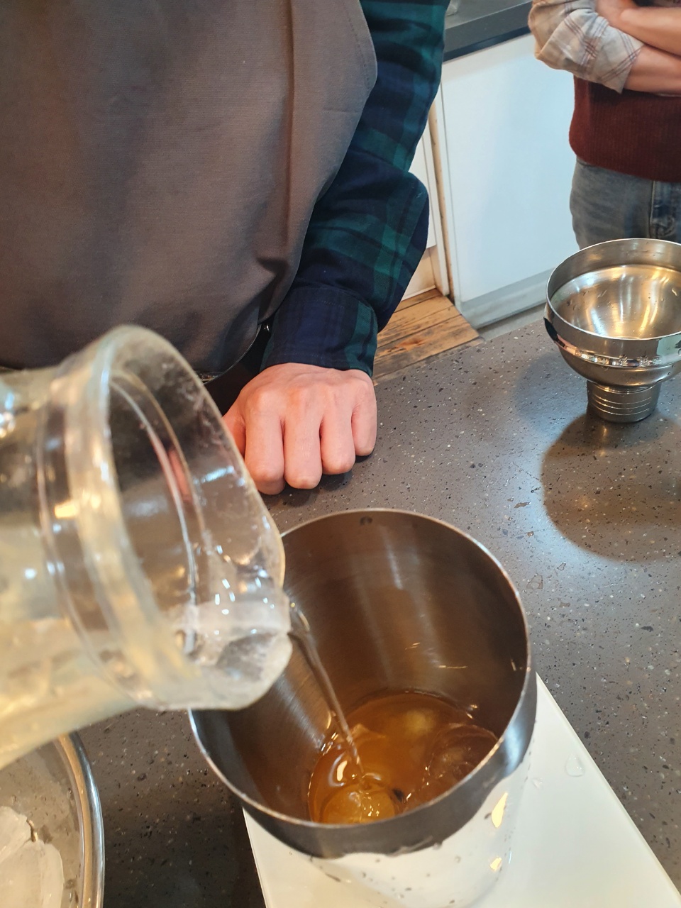 2. 잔에 얼음5개를 담고 잔에 채운다
